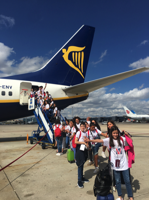 Para empezar el viaje, los chicos viajaron al aeropuerto, donde cogimos el avión que nos llevaría a nuestro próximo destino. Lo mejor del viaje fue verles a todos con su camiseta de Varona’s Institute, ¡iban todos a juego!